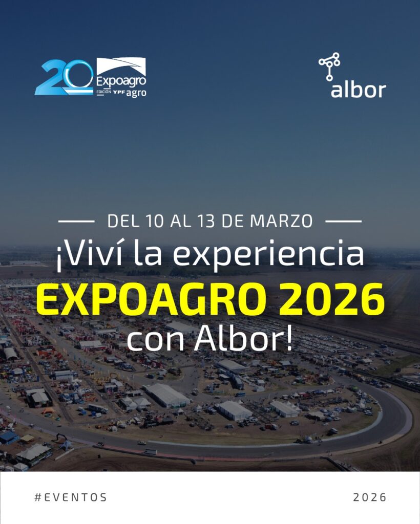 Del 10 al 13 de marzo, Albor participará de una nueva edición de Expoagro, el punto de encuentro clave para productores, empresas y referentes del sector, que se presenta como el escenario ideal para empezar a decidir con inteligencia. La muestra se realizará en el predio ferial y autódromo de San Nicolás (Ruta Nacional N° 9, km 225).