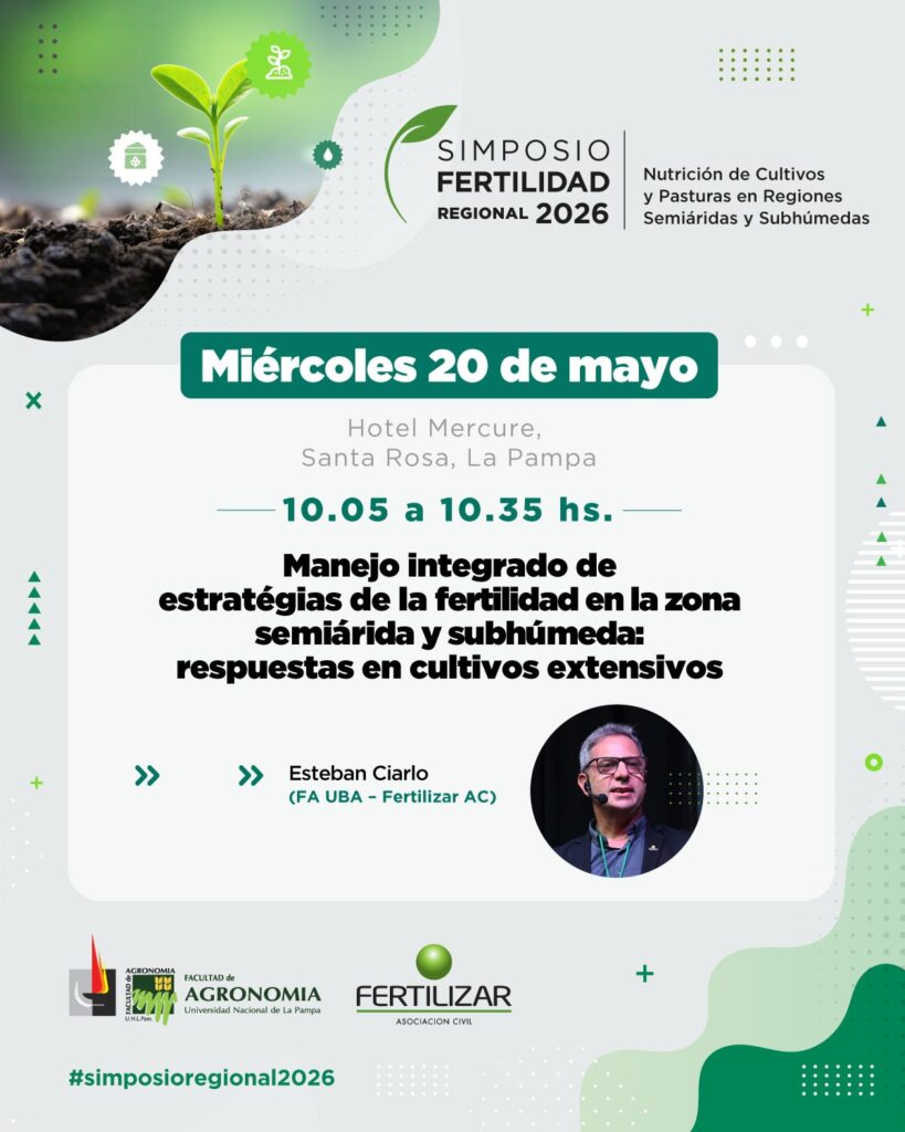 El próximo 20 de mayo se realizará en Santa Rosa, La Pampa, el Simposio Regional Fertilidad 2026, organizado por el Equipo de Trabajo “Grupo Producir en Semiárida” de la Facultad de Agronomía de la UNLPam y Fertilizar Asociación Civil, con la coordinación académica de Martín Díaz Zorita y Esteban Ciarlo.