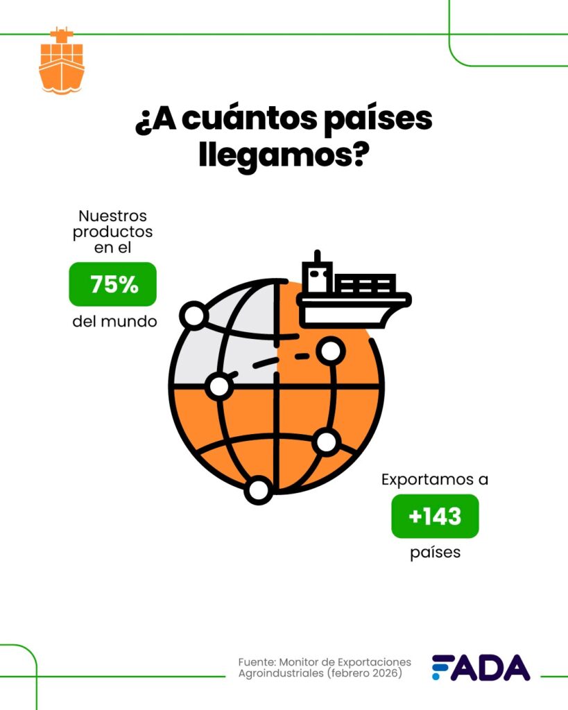 “Es curioso conocer qué países eligen qué productos argentinos, es uno de los tantos datos que aporta el Monitor de Exportaciones Agroindustriales de FADA”, añaden las economistas. Por ejemplo, el maíz llega a más de 85 países, pero el top 5 de compradores lo integran Vietnam, Perú, Malasia, Argelia y Arabia Saudita. Si analizamos la carne de vaca, estamos en la mesa de más de 60 países y quienes mas nos eligen son China, Estados Unidos, Israel, Alemania y Países Bajos.
